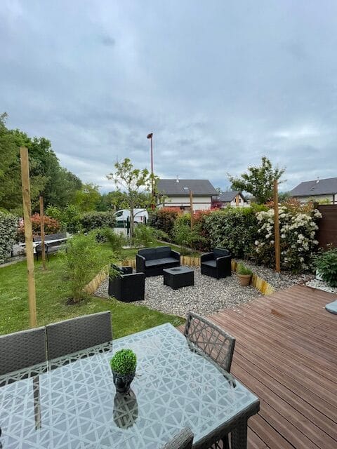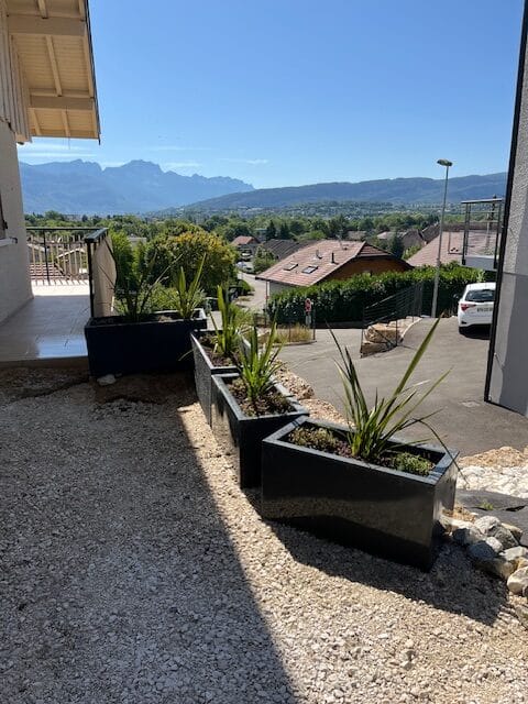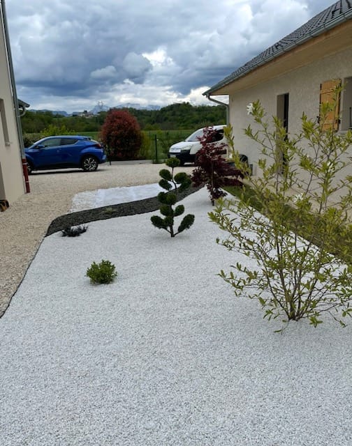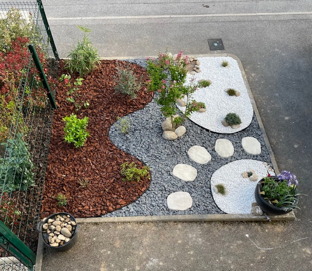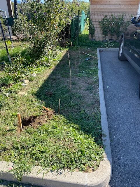 Réalisations jardinsAVANT/APRESTonte de pelouse Taille d'un arbuste en topiaire Plantation d'une haie d'arbustes Plantation d'un massif Réalisation d'une bordure en béton
